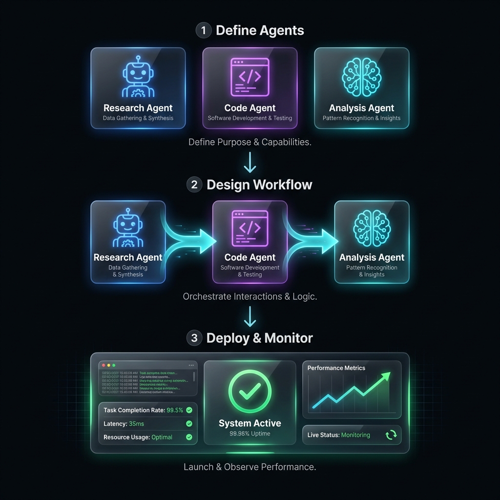Launch your multi-agent system and monitor performance in real-time.